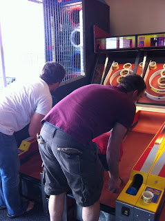 Jack and James trying to play ski ball, but not very successful. The daddy's had to help... A LOT!
