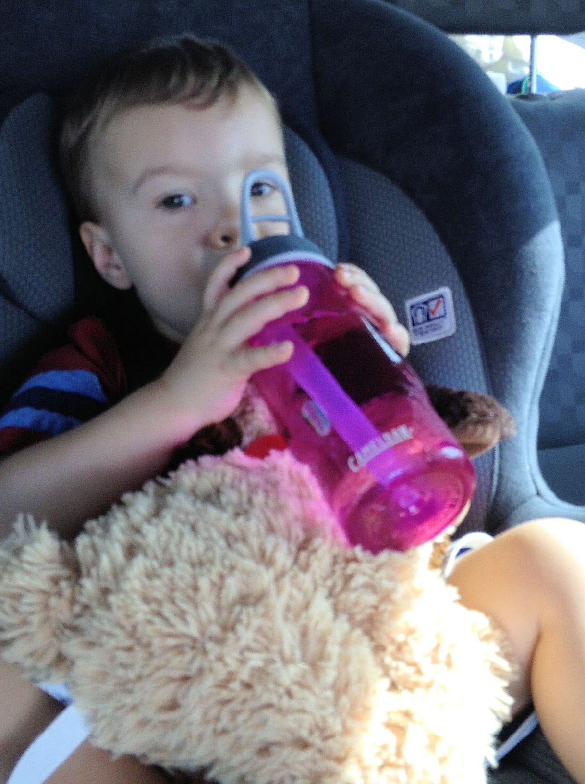 So our journey started. Here are a few pics of Jack in the car. He loves car rides right now so the trip was not bad. As long as you can stand Fresh Beat Band and kid Sunday School songs playing in the car.