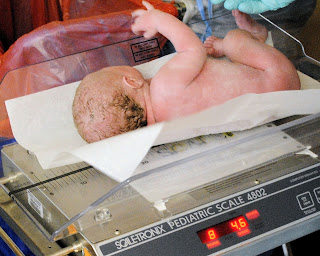 My dad and Sherry came a little later and the tv show Friends was on so we watched a little tv. My dad kept commenting on how much better I looked this time than when in labor with Jack. At around 5:30 they checked me and I was at a 10. So everyone left the room except for Ben and at 5:45 we did two sets of three pushes while counting to 10. After the second set they said we'd better stop or the doctor wasn't going to make it. So we just all hung out (for about 20 minutes) until the doctor arrived. Still, I didn't feel a thing. She came, I did two or three sets of pushes and out came Kyle. He was born at 6:18pm.