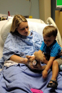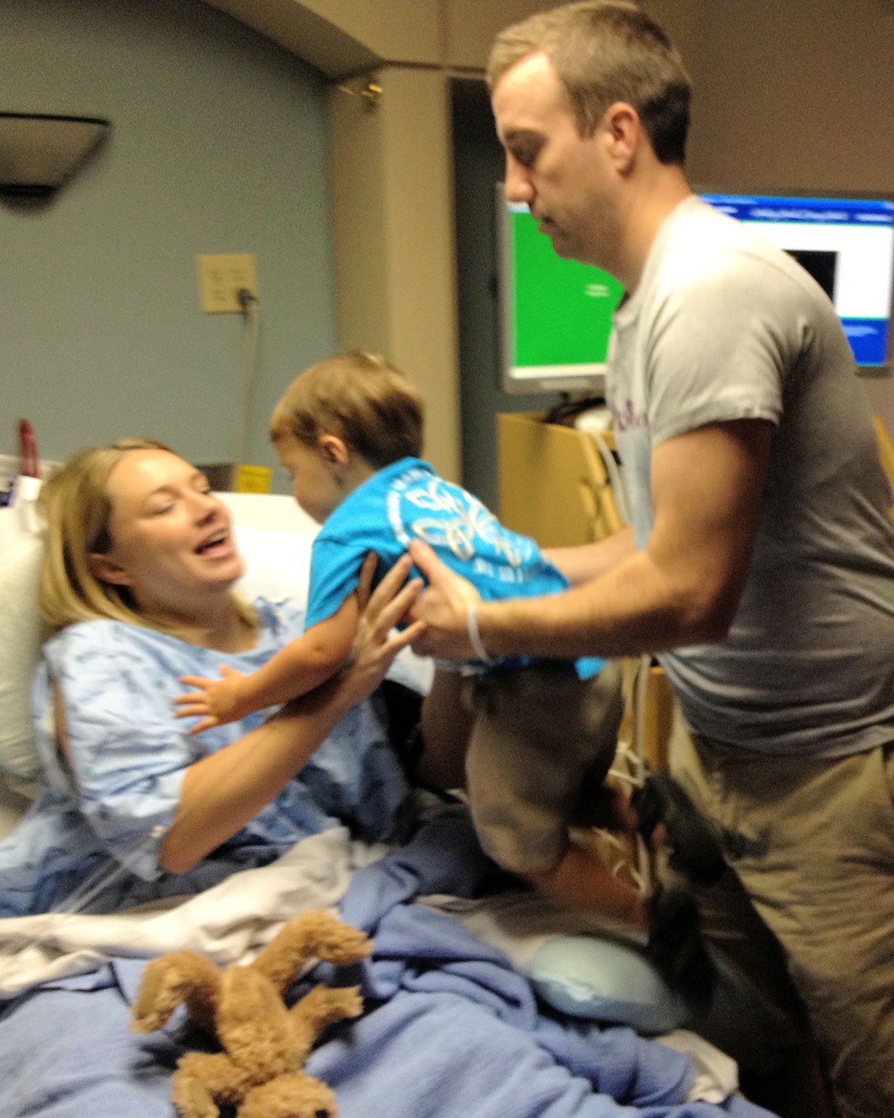 Soon after I delivered Kyle, they took him to the nursery for observation (as well as give time for the epidural to wear off). During that time, Jack was able to come and see me. He had been patiently waiting in the waiting room and was very sleepy by this time. It was right around his bedtime and he had had a long day. I was so happy to see him.