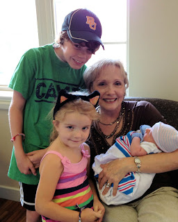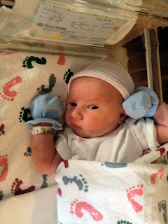 The first nights in the hospital weren't too bad. Being my second child, I knew that he would want to eat a lot. So I was expecting it. The second night seemed like he wanted to eat almost every hour. But, Ben never had to get up and walk around the room or rock him to calm him down like we had to with Jack. I guess as long as I would let him eat, he was content. All in all we were more laid back this time and I think that helped.
