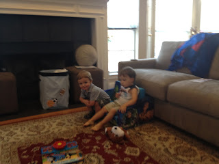 Jack and James having fun. James and his dad came over one Saturday so the little boys could play and the big boys could watch college football. I think the boys had fun. I was also able to take a nap while Kyle was napping. Side note- one thing I've learned from having a 2nd baby...there is rarely a time during the day when you can actually take a nap. The boys are on opposite schedules. So this nap was a treat for me.