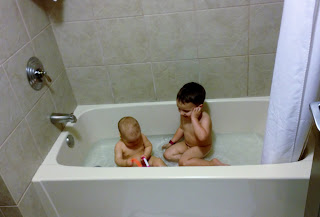 After presents we went swimming for a little bit. Here are the boys in their swim outfits.