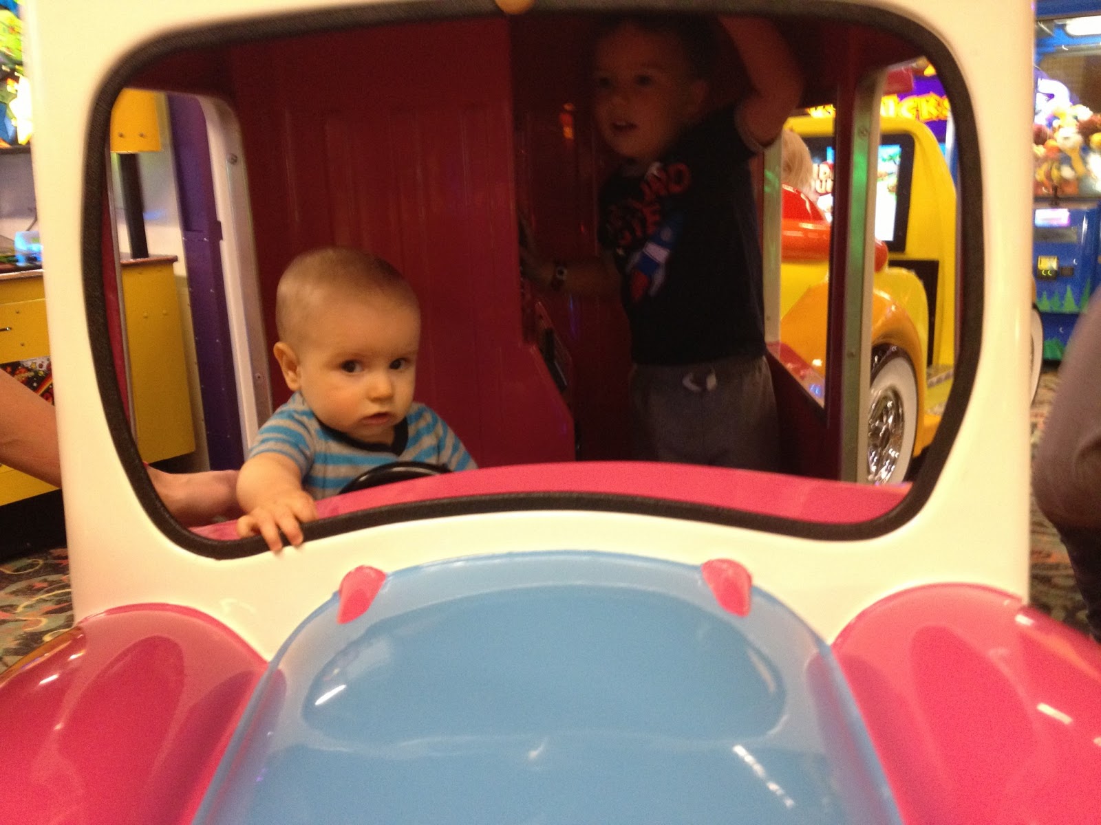 Jack and James trying to play ski ball, but not very successful. The daddy's had to help... A LOT!