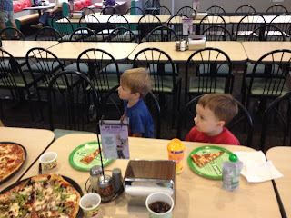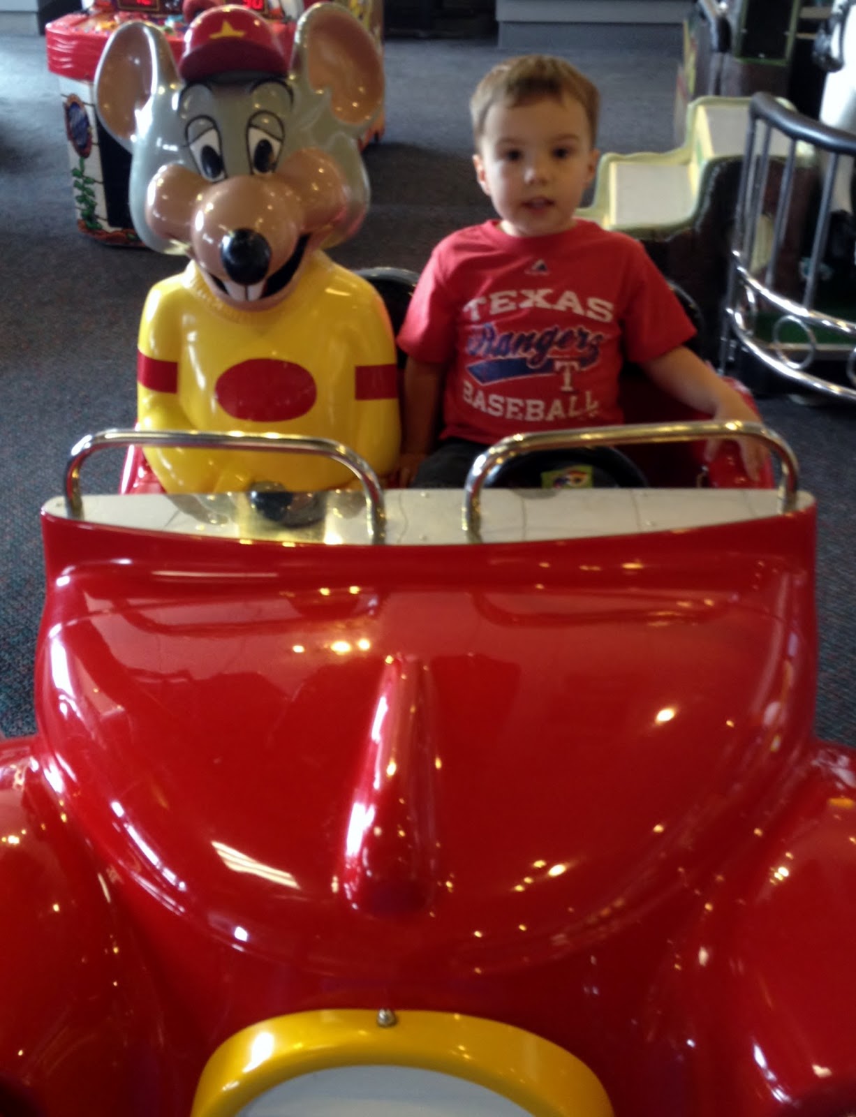 The next day we met Jack's friend James and his mom, dad and sister Annabelle at Chuck E Cheese. This was planned before we decided to go to Great Wolf Lodge. A few weeks before this Miss Wixson, Jack's teacher at school told us how one day, all Jack talked about was going to Chuck E Cheese that night with Daddy. She said he went on and on about it. Well, Jack has not been to CEC since he was 18 months old so I'm pretty sure he wasn't remembering that time. We finally realized that sometimes Disney Jr. channel has CEC commercials. Anyway, we decided since his party wasn't going to be for a week and a half after his birthday we'd get his closest friends to go to CEC with him.